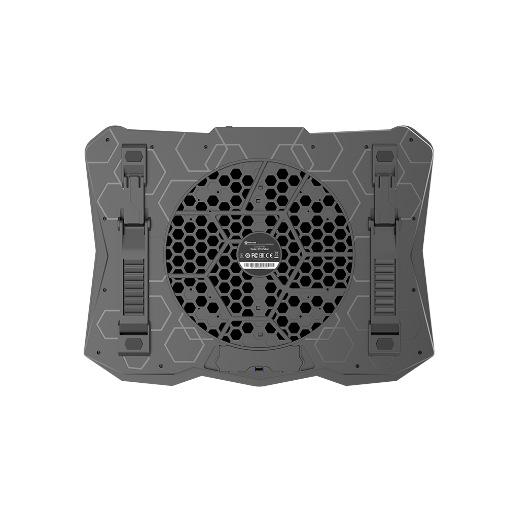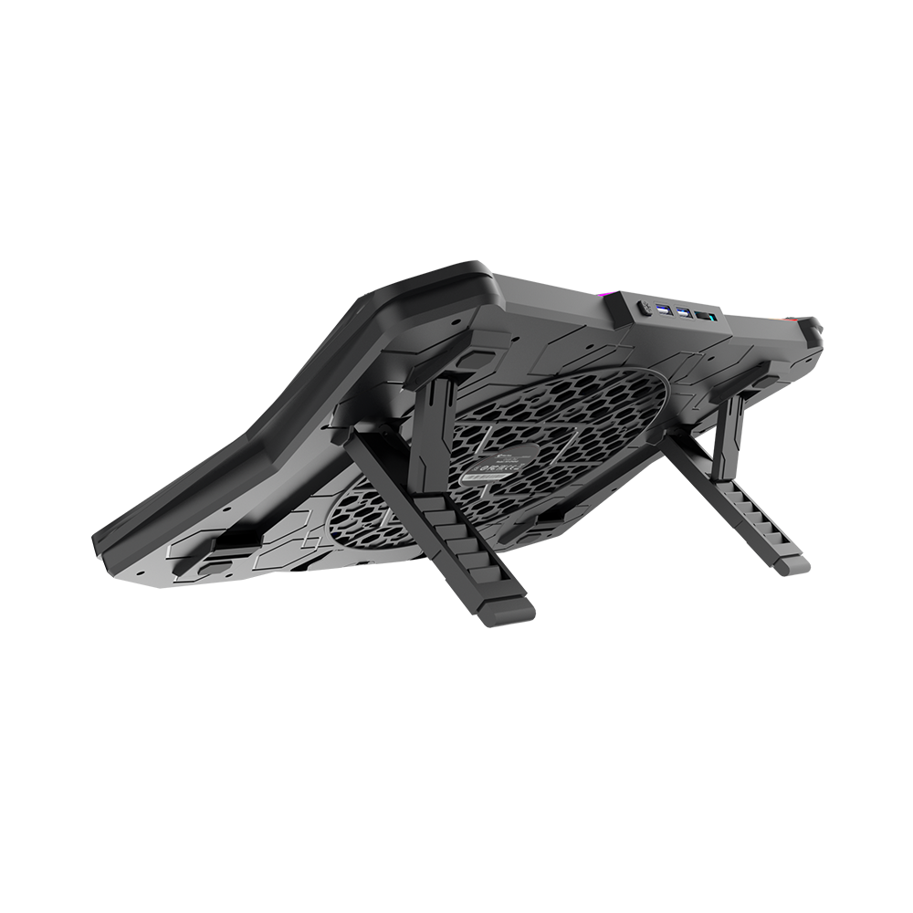 CP4040 gaming cooling pad, specially designed for notebook computers, with fast cooling speed and low noise, the cooling pad has RGB backlight design, which perfectly matches your notebook computer and related electronic equipment, highlights the atmosphere, puts you in a colorful world, provides Immersive user experience. The upper cover of the heat dissipation pad is designed with aluminum alloy material, which can effectively reduce the heat of the computer, say goodbye to the freeze due to overheating in the game, and make the game process smoother. You can also manually adjust the speed of the fan. The bottom of the cooling pad is designed with a foot rest, so that the computer will not slide down easily. The height of the cooling pad can be adjusted according to your own habits. There are seven levels of height adjustment. USB power supply, plug and play, no need to drive. Suitable for 9-17 inch laptops.