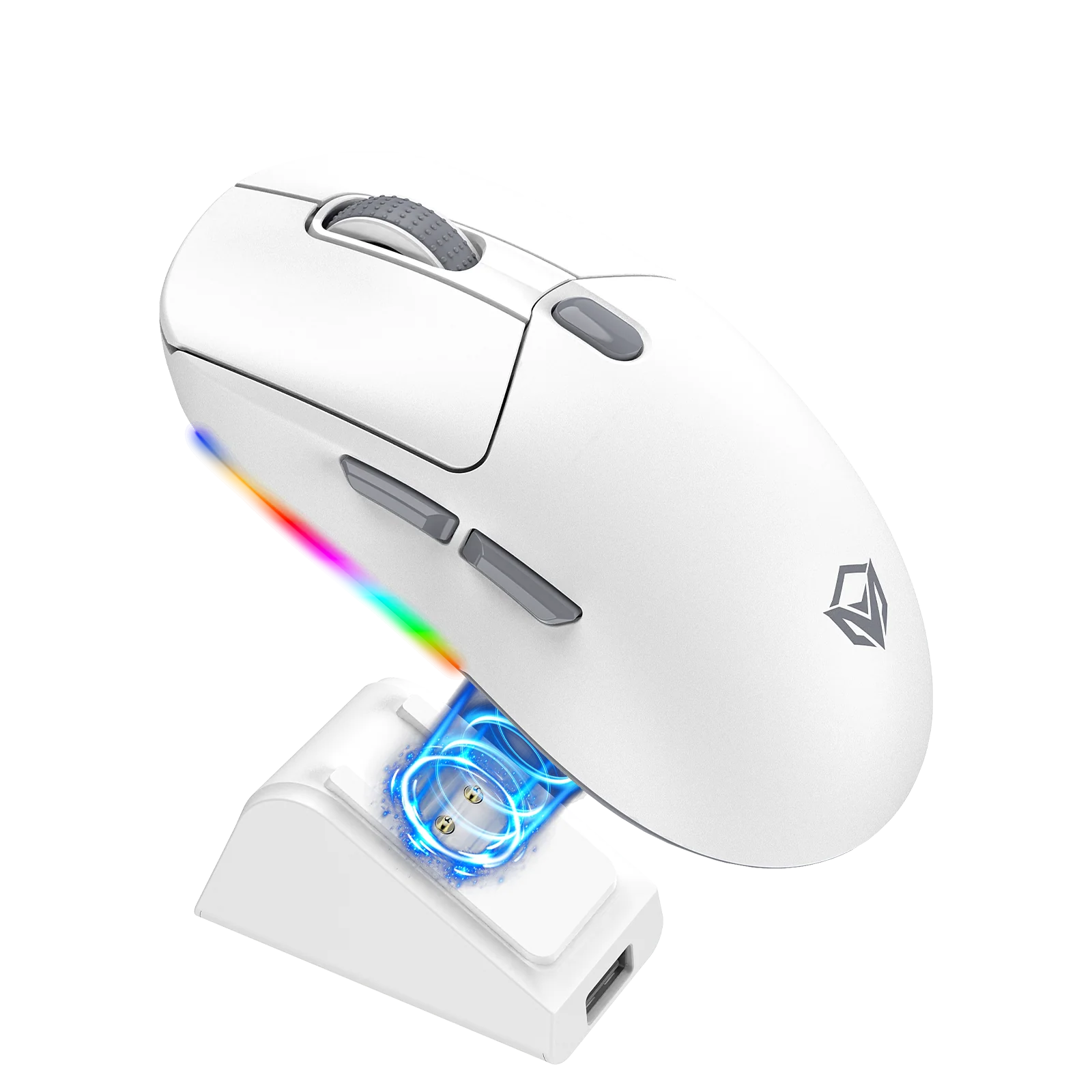 Meetion GW38 Wireless Tri-Mode Mouse with Magnetic Charging Dock – White