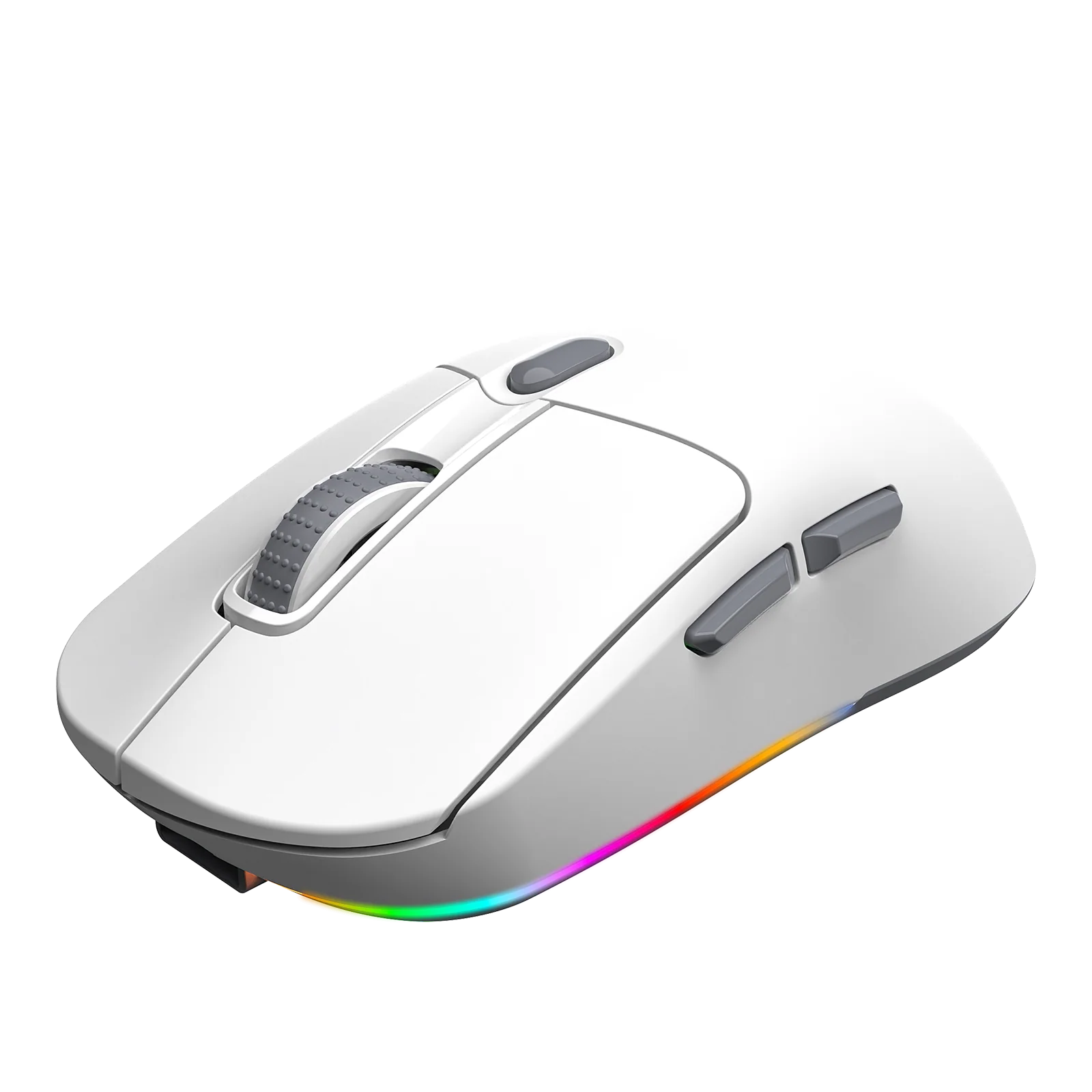 The GW38 mouse seamlessly integrates 2.4G wireless, Bluetooth, and wired connectivity to meet diverse device-switching needs. Its ergonomic lightweight design combined with PTFE Teflon feet ensures comfortable and smooth usage for extended periods. Featuring full-color RGB backlighting and multiple DPI settings (200-8000 DPI), it effortlessly caters to both personalized aesthetics and precise control. Equipped with the advanced PAW3104 sensor, an adjustable polling rate of 125-1000Hz, and a 1ms response time, the GW38 delivers unparalleled precision and ultra-fast responsiveness. The magnetic charging design paired with a 600mAh high-capacity battery ensures long-lasting power and effortless charging. High-quality switches support up to 20 million clicks for exceptional durability, while the convenient receiver storage compartment and anti-slip protective pads highlight meticulous, user-friendly details. Compatible with Windows 10/11 and offering comprehensive multi-platform driver support, the GW38 mouse is the ideal choice for office work, gaming, and everyday use, providing an unmatched operational experience.