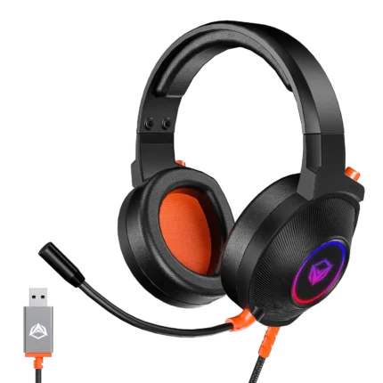 Meetion MT-HP021 Gaming Headset Backlit 3.5mm Audio Pin *1 with Audio and USB – Black Orange