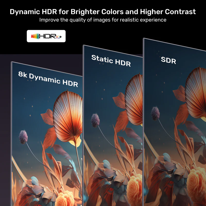 Experience brighter colors and higher contrast with Dynamic HDR technology, which guarantees that your video is displayed at its optimal values for depth, detail, brightness, and a wider color gamut. The UNITEK 8K USB-C to DisplayPort Bidirectional Cable also supports HDCP 2.3, ensuring secure content transmission while enhancing your viewing experience. Enjoy every scene with vibrant clarity and stunning detail!