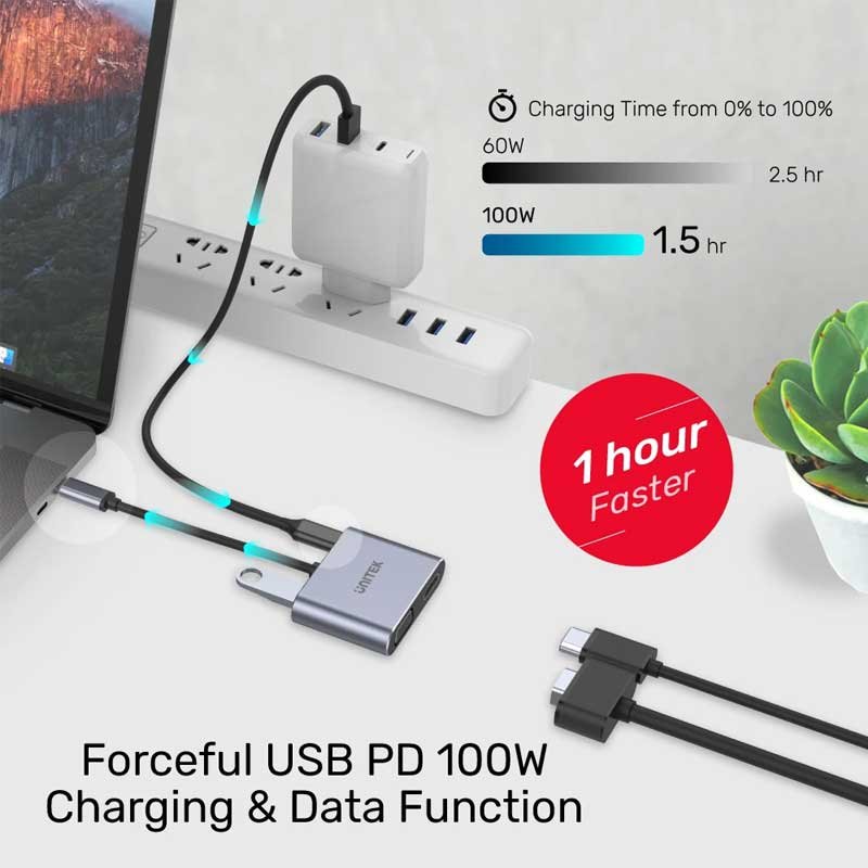 - Downstream: HDMI, VGA, USB2.0 Type-C PD 100W, USB2.0 Type-A