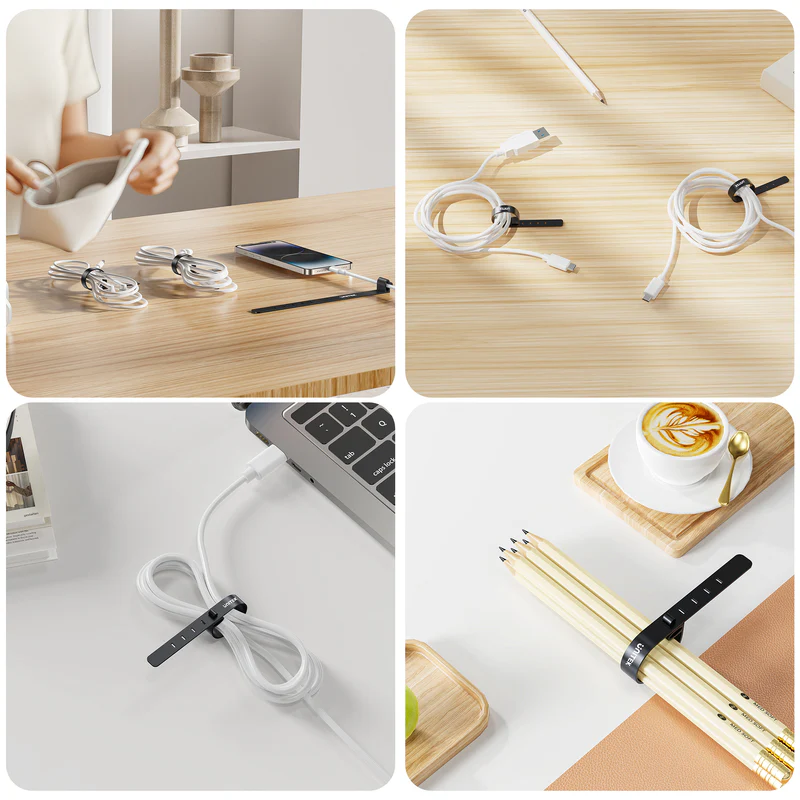 Simple solution to keep your workspace organized with durable, reusable ties. Perfect for bundling cables from laptops, phones, and chargers, these ties also secure pens and other small items. Their versatile design and strong grip ensure a clutter-free desk, ideal for home, office, or travel. Each pack provides multiple ties to meet all your organizational needs.