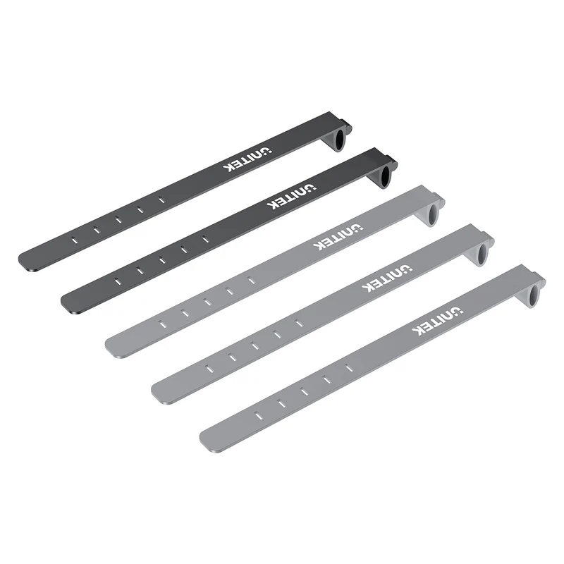 Keep your workspace organized with the UNITEK FlexiTie Cable Organizer. Made from durable, elastic silicone, these flexible ties securely bundle cables while being reusable and easy to clean. Their versatile design allows them to not only manage cables but also seal and secure various items. The round hole at the top makes attachment easy, preventing loss and enabling you to hang cables to save space. At 13.5 cm long, they’re perfect for earphone cables, data cables, and more. Each set includes five ties, giving you plenty of options to declutter your home or office.