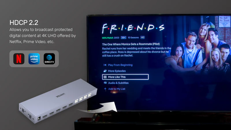 Allowing you to broadcast protected digital content at 4K UHD from services like Netflix, Prime Video, and more. Enjoy seamless streaming of high-quality media while ensuring compliance with content protection standards.