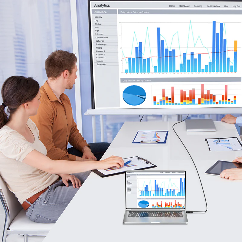 Enhancing professional collaboration by delivering 8K@60Hz visuals and lossless signal transmission up to 50 meters, perfect for connecting laptops to large displays during meetings. With a 48Gbps bandwidth and hybrid shielding to prevent EMI interference, it ensures clear, uninterrupted data presentations, supporting dynamic HDR and 32 audio channels. Its slim, durable design makes it ideal for modern workspaces, helping teams share insights and make decisions with precision and clarity.