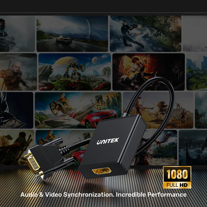 The UNITEK VGA to HDMI Adapter allows you to connect older model computers and laptops with VGA outputs to HDMI display devices such as TVs, monitors, or projectors. Enjoy seamless video streaming, gaming, and content sharing with ease. This adapter supports resolutions up to 1920×1080@60Hz (1080P HD).