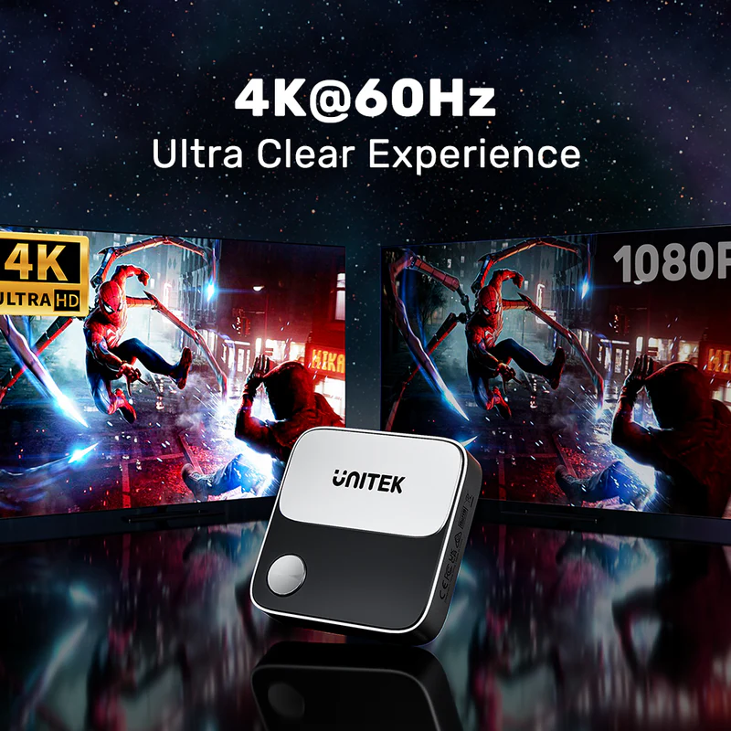 UNITEK Wireless screen mirroring device supports 4K decoding, delivering stunning 4K@60Hz high-definition output. User can easily switch to a larger screen and enjoy high-quality audio and video contents with friends and family.