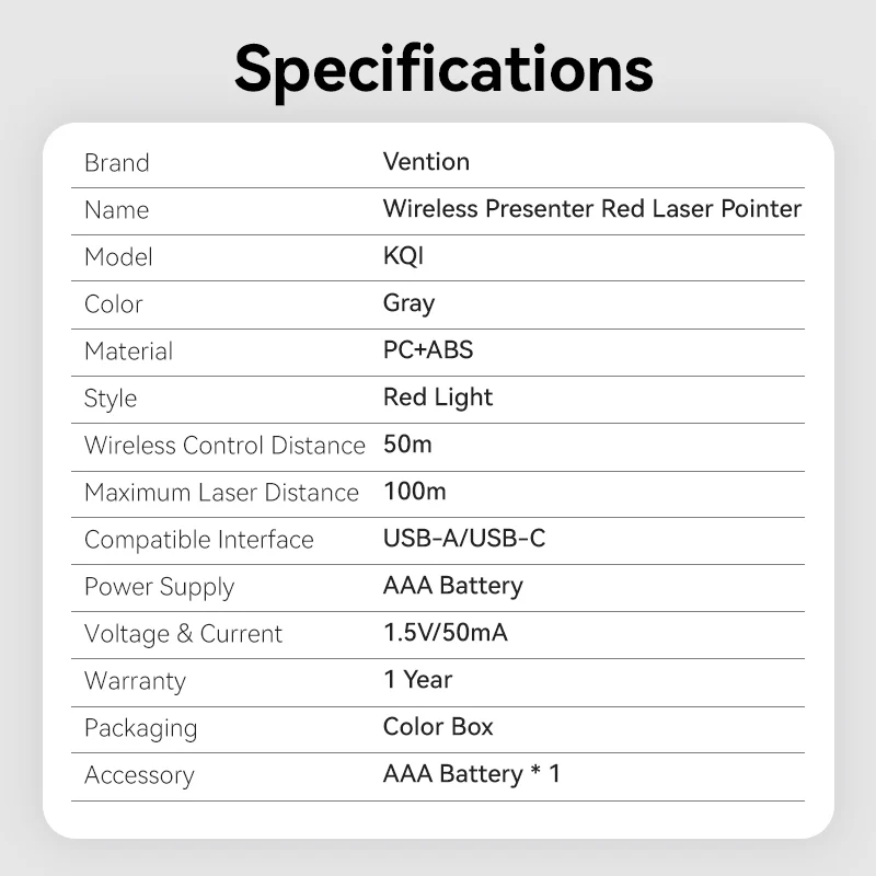 Be the first to review “Vention Wireless PowerPoint Presentation Clicker – Gray” Cancel reply